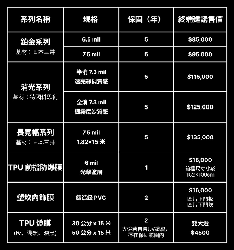 - 依車型、施工項目、施工難易度、用料多寡,價格會有所差異。